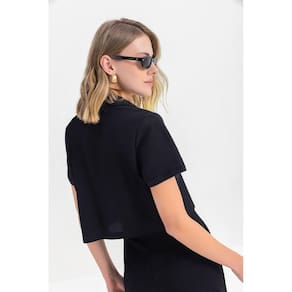 Blusa Cropped Feminina em Moletinho Essendi P - Preto - G