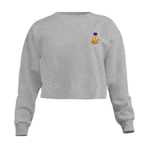 Blusa Cropped Moletom Astronauta Saturno Feminino Personalizado com Cintura Descosturada - Cinza - P
