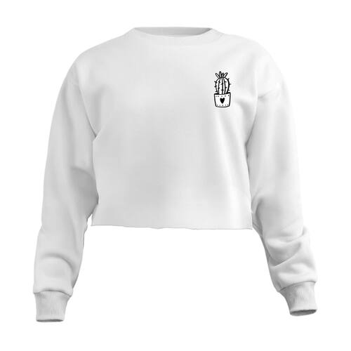 Blusa Cropped Moletom Cacto Feminino Personalizado com Cintura Descosturada - Branco - G