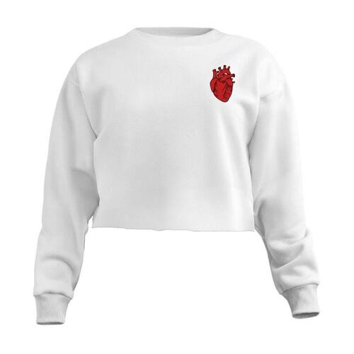 Blusa Cropped Moletom Coração Feminino Personalizado com Cintura Descosturada - Branco - G