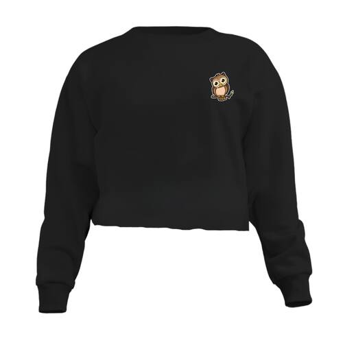 Blusa Cropped Moletom Coruja Feminino Personalizado com Cintura Descosturado - Preto - GG