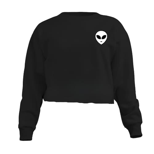 Blusa Cropped Moletom Et Feminino Personalizado com Cintura Descosturada - Preto - GG
