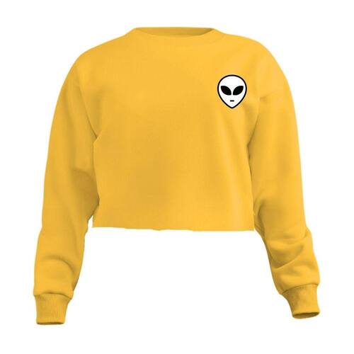 Blusa Cropped Moletom Et Feminino Personalizado com Cintura Descosturada - Amarelo - M