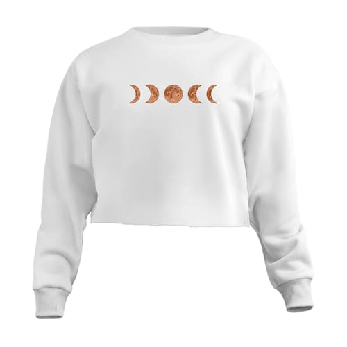 Blusa Cropped Moletom Fases Da Lua Feminino Personalizado com Cintura Descosturada - Branco - G