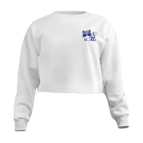 Blusa Cropped Moletom Gato Feminino Personalizado com Cintura Descosturada - Branco - GG