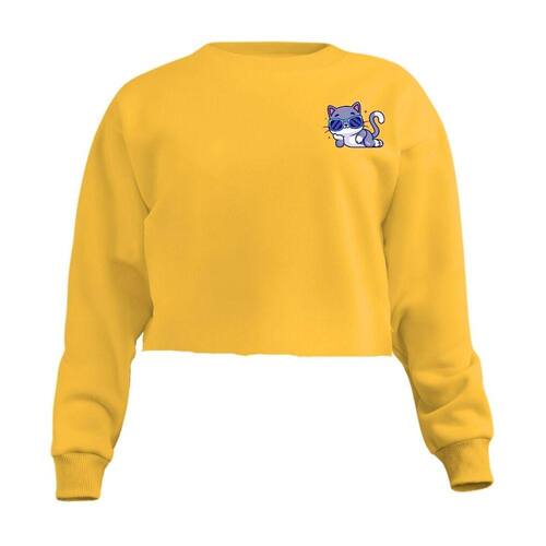 Blusa Cropped Moletom Gato Feminino Personalizado com Cintura Descosturada - Amarelo - P
