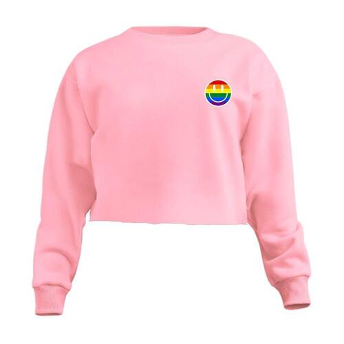 Blusa Cropped Moletom Lgbt Feminino Personalizado com Cintura Descosturada - Rosa - GG