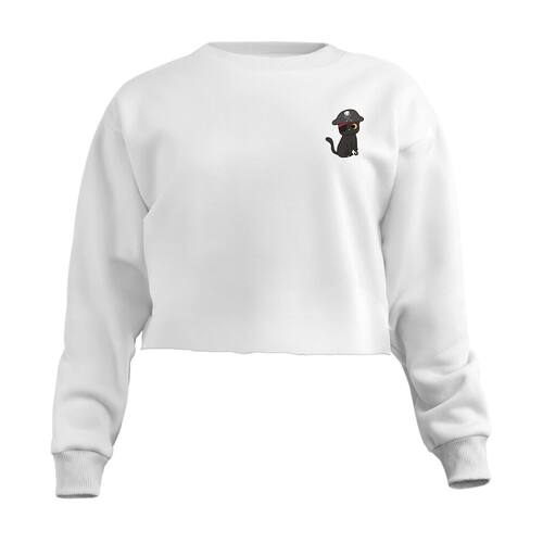 Blusa Cropped Moletom Pirata Gato Feminino Personalizado com Cintura Descosturada - Branco - P