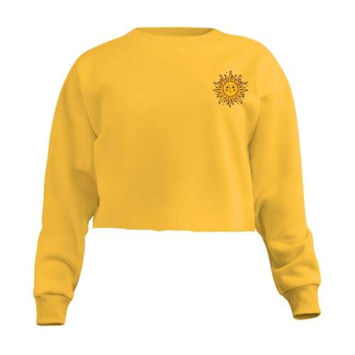 Blusa Cropped Moletom Sol Feminino Personalizado com Cintura Descosturada - Amarelo - P