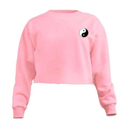 Blusa Cropped Moletom Yin Yang Equilíbrio Bem e Mal Feminino Personalizado com Cintura Descosturada - Rosa - G