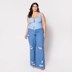 Blusa Cropped Plus Corset com Colchetes e Bojo Azul Claro