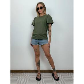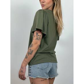 Blusa de Algodão Manga Bufante- Verde Oliva - Verde Musgo - GG