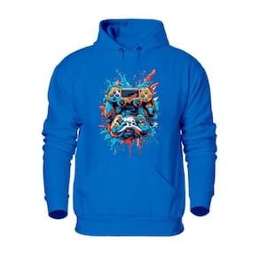 Blusa de Frio Masculina Com Bolso Canguru Punho e Capuz Flanelada Cordao Ajustavel - Azul Royal - P