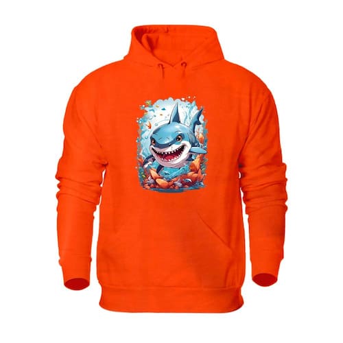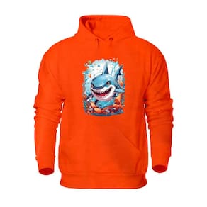 Blusa de Moletom Com Capuz Bolso Canguru Flanelada Quente Inverno Estampa Tubarão - Laranja - GG