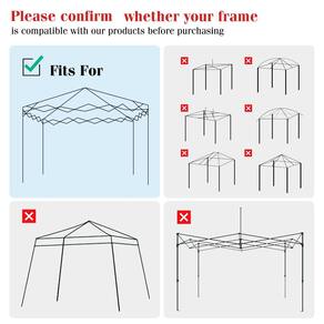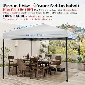 - A melhor escolha - A capa superior de reposição de dossel de 10 x 10 pés se encaixa na maioria das estruturas de dossel padrão com 4 pernas retas e é fácil de dobrar e guardar em sua bolsa. O dossel mede 10' W(304,8 cm)x 10' D(304,8 cm)x 37" H(93,98 cm)(quando colocado na estrutura do dossel), uma boa opção para substituir o que está quebrado ou comprá-lo como reserva. Não é para qualquer dossel com pernas inclinadas! Não é adequado para CROWN Frame!