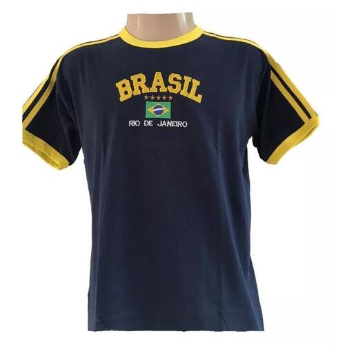 Blusa Do Brasil Bandeira Bordada Unissex - Azul Escura Tamanho: EXG Camisa Bordada do BRASIL - Unissex Não é babylook