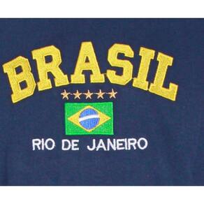 Blusa Do Brasil Bandeira Bordada Unissex - Azul Escura Tamanho: GG Camisa Bordada do BRASIL - Unissex Não é babylook