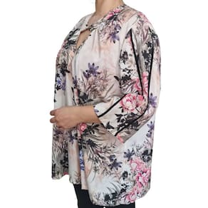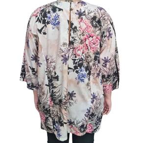 Com modelagem ampla e mangas estilo raglan, ela proporciona liberdade de movimentos e valoriza a silhueta com leveza e charme.
