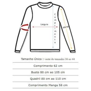 Comprimento 62 cm / Busto 80 cm ao 105 cm / Quadril 80 cm ao 110 cm