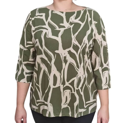 Blusa Feminina Estampada Verde 3/4 Laiza Plus Size.