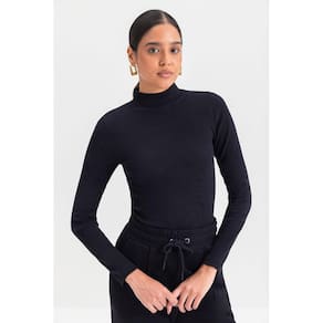 Blusa feminina gola alta em ribana Essendi - Preto - XG