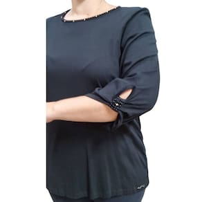 A Blusa Feminina Manga 3/4 Raio de Luz com Apliques é a escolha ideal para quem deseja unir elegância e delicadeza em uma só peça.