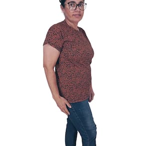 Destaque-se com a Blusa Feminina Manga Curta Estampada, confeccionada em viscose com elastano, que proporciona leveza, maciez e caimento impecável.