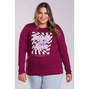 Blusa feminina manga longa elaborada em viscose com elastano. Possui boa elasticidade, estampada "Dreamer Love", toque macio, uma peça leve, ideal para o dia a dia, seja como destaque no look ou ainda sobreposta por jaquetas, casacos, etc. Uma básica clássica, porém diferenciada! Qualidade e conforto já ao primeiro toque.