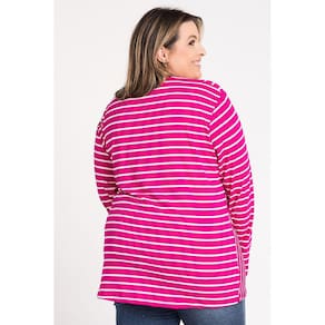 Blusa feminina manga longa plus size elaborada em visco. Peça leve, com boa elasticidade, aquele toque macio. Possui detalhe vazado abaixo da gola, listrada com aquele estilo diferenciado na hora de vestir. Use-a de forma mais justa marcando a silueta ou soltinha, como destaque do look ou sobreposta, para passear, trabalhar ou curtir aquele dia de folga. Do jeans ao social você irá compor looks maravilhosos e cheios de estilo tendo esta peça coringa em seu guarda roupas.