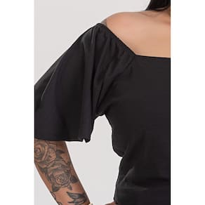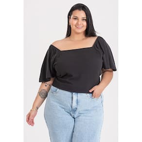 A blusa feminina plus size decote quadrado conta com uma elegante manga godê.