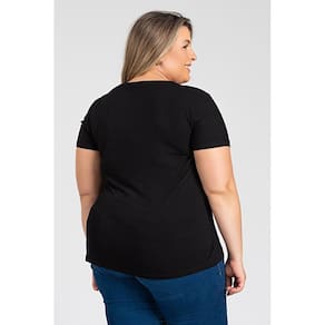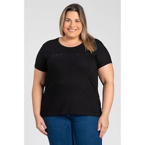 T-shirt feminina plus size elaborada em malha visco decote redondo.