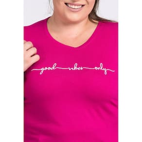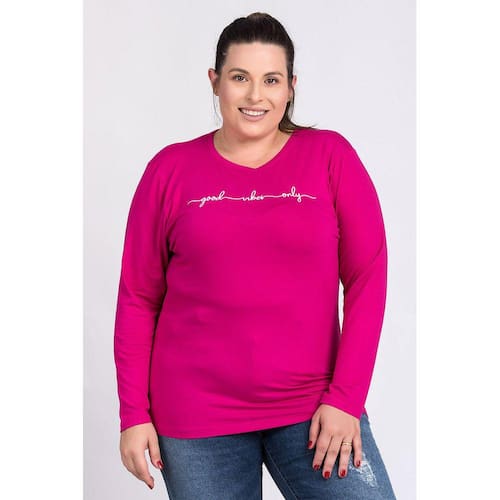 Blusa feminina plus size elaborada em visco. Possui estampa na parte da frente "Good vibes only" (apenas boas vibrações), toque macio, peça leve com boa elasticidade! Nos dias frios tenha aquela peça para usar como destaque do look ou sobreposta e que será a queiridinha de seu guarda roupas, pois toda mulher ama uma "básica, nada básica"!