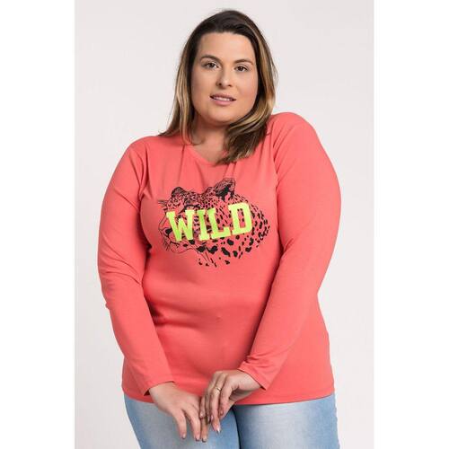 Blusa Feminina Plus Size Manga Longa Visco Estampada "Wild" - Serena - Coral - G4