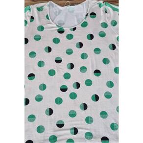 Com estampa de bolas em tons de verde, a peça traz um toque de personalidade e frescor ao look, ideal para o dia a dia.