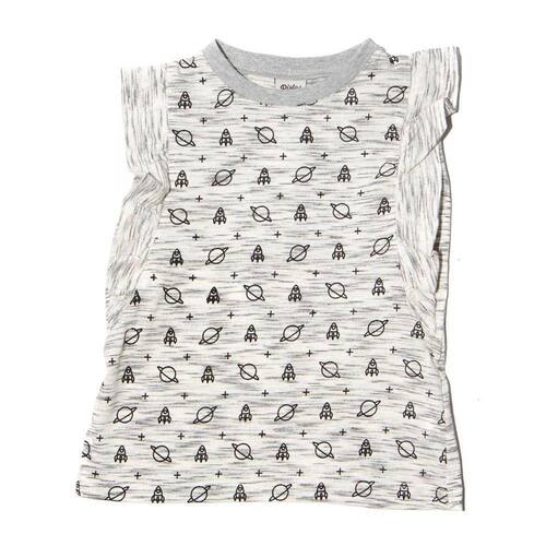 Blusa infantil super delicada com as manguinhas franzidas. A estampa espacial é exclusiva Pistol Star! De malha, com toque mega macio, vai deixar as baby girls super estilosas e prontas para qualquer aventura!