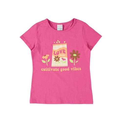 Blusa infantil confeccionada em meia malha 100% algodão. Apresentando modelagem Tradicional, perfeita para as meninas usarem no dia a dia, essa peça conta com decote redondo, mangas curtas e estampa frontal com glitter. Além disso, a meia malha de algodão 100%, sendo super confortável, respirável de toque macio e fácil manuseio, garantindo alta durabilidade no uso. Invista com shortss jeans Malwee Kids e tênis de caninho!