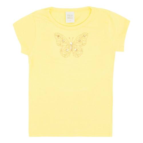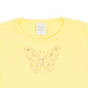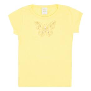 Blusa infantil menina confeccionada em cotton leve na cor amarelo, para usar no dia a dia e em passeios divertidos e especiais com a mamãe! Possuí estampa bordada de borboleta em paetê no centro da blusa.