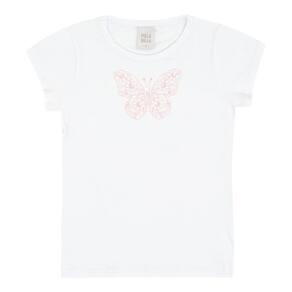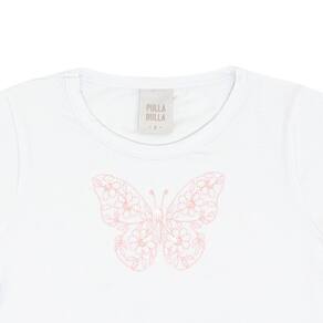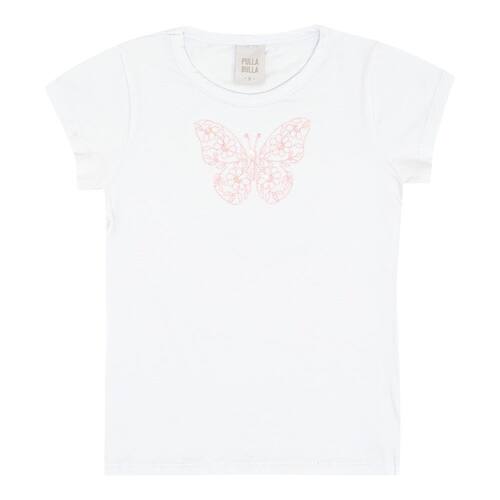 Blusa infantil menina confeccionada em cotton leve na cor branco, para usar no dia a dia e em passeios divertidos e especiais com a mamãe! Possuí estampa bordada de borboleta em paetê no centro da blusa.