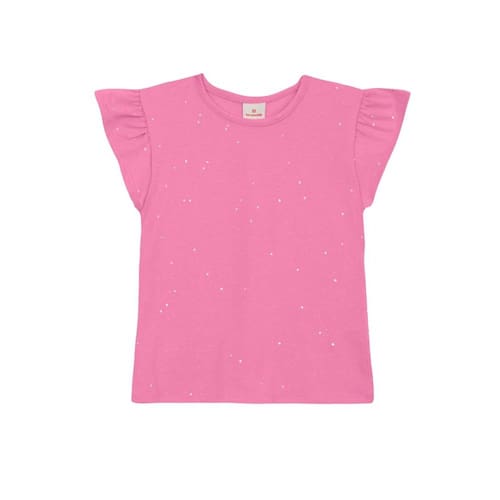 Deixe sua pequena radiante com a blusa infantil da Brandili, confeccionada em cotton com efeito brilho. As mangas curtas em babado e a gola redonda trazem um toque especial ao visual. Ideal para transformar o dia a dia em momentos inesquecíveis, essa peça é perfeita para combinações com saias ou calças. Aposte no conforto e na elegância para que sua menina brilhe em qualquer ocasião.