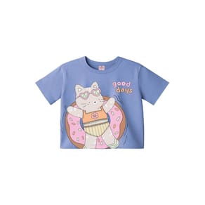 Cheia de estilo e conforto! Essa blusa infantil para menina é confeccionada em meia malha macia e traz estampa frontal de gatinho Sweet Goods que deixa o visual ainda mais moderno. Com modelagem cropped oversize, gola redonda e mangas curtas, é a peça perfeita para compor looks casuais cheios de personalidade e diversão. Ideal para usar com shorts, saias ou calças, garantindo versatilidade no dia a dia.
