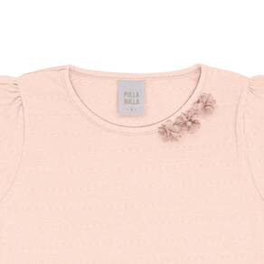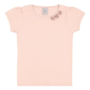 Blusa menina confeccionada em cotton trabalhado na cor rosa pó! Complete o look com peças da coleção. A blusa possuí aplique de flores próxima a gola deixando a peça charmosa e delicada ao ser usada em momentos especiais.
