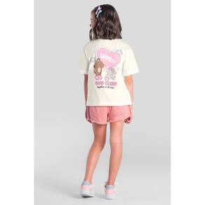 Essa blusa infantil para menina é confeccionada em meia malha macia e traz estampa de ursinho Sweet Goods frontal e nas costas, garantindo um visual divertido e atual. Com modelagem oversized, gola redonda e mangas curtas, é a escolha perfeita para produções casuais com um toque de tendência. Versátil e prática, combina facilmente com diferentes peças do guarda