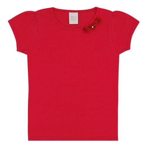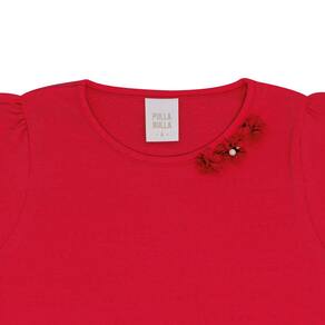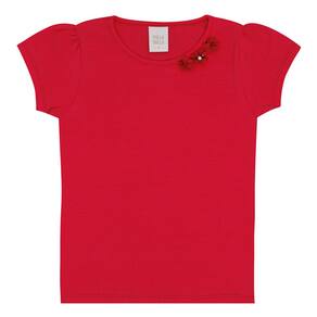 Blusa menina confeccionada em cotton trabalhado na cor vermelho! Complete o look com peças da coleção. A blusa possuí aplique de flores próxima a gola deixando a peça charmosa e delicada ao ser usada em momentos especiais.