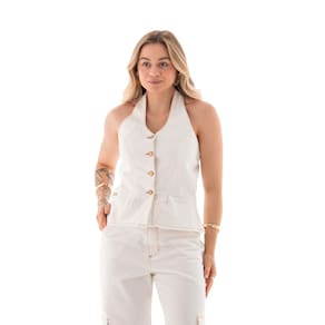 Blusa jeans frente única com modelagem moderna e feminina. Possui gola alta com decote em “V”, fechamento frontal por botões e recortes que valorizam a silhueta. O tecido em denim leve garante conforto e caimento estruturado, ideal para compor produções versáteis — do casual ao elegante. Combine com calça ou saia jeans para um look all denim cheio de estilo.