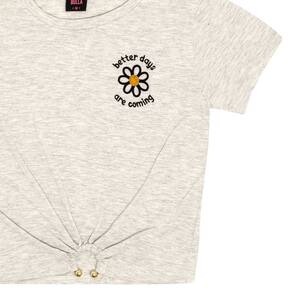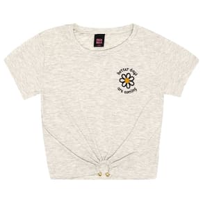 Blusa tendência e indispensável no guarda-roupa das fashionistas. Confeccionada em meia malha na cor mescla banana, possuí leveza para aproveitar cada momento, aplique bordado de flor e detalhe "piercing" próximo a barra deixando a peça ainda mais fashionista.