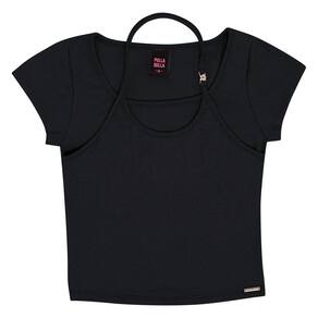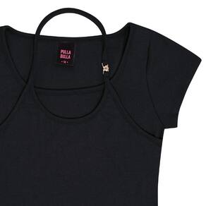 As meninas adoram blusas diferentes e estilosas e esta irá encantar a todas! Blusa em ribana com elastano leve na cor preta, possuí modelagem com tendência de sobrebosição e fivela de metal decorativa na alça, um verdadeiro charme!