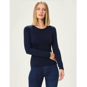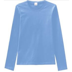 Blusa confeccionada em cotton light, um tecido de toque macio e confortável. Modelagem com caimento justo no corpo. Modelo possui mangas longas e decote redondo.