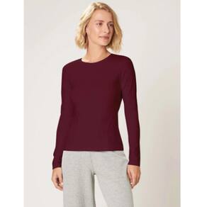 Blusa confeccionada em cotton light, um tecido de toque macio e confortável. Modelagem com caimento justo no corpo. Modelo possui mangas longas e decote redondo.