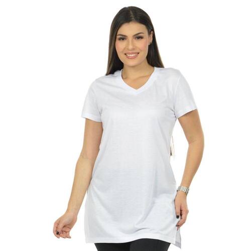 Fique dentro da tendência com esta blusa alongada, confeccionada em malha mista de poliéster e viscose, uma malha leve. modelagem alongada e soltinha com detalhe de fenda nas laterais e mangas curtas. ideal para um look mais moderninho e elegante.