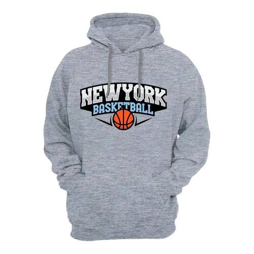 Blusa Moletom Canguru Com Capuz Ajustavel Estampa New York Basketball Estiloso Academia Dia a Dia - P - Cinza